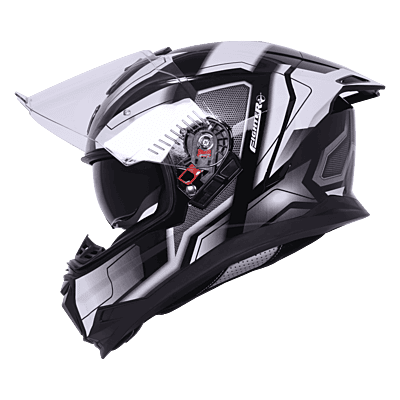 STEELBIRD SBH-57 ISS FIGHTER F3 GLOSSY BLACK/WHITE C/V 580MM WITH EXTRA SMOKE VISOR